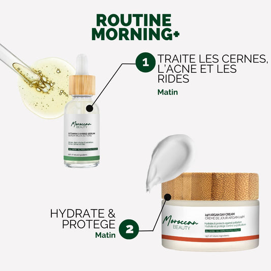 Moroccan argan oil is a true treasure for the skin, delivering intense hydration for unparalleled softness. With its anti-aging properties, it smooths wrinkles and helps prevent signs of aging. It repairs tissue, promotes healing, and soothes irritation. Additionally, it protects against external stressors, such as pollution and UV rays, for healthy, resilient skin.